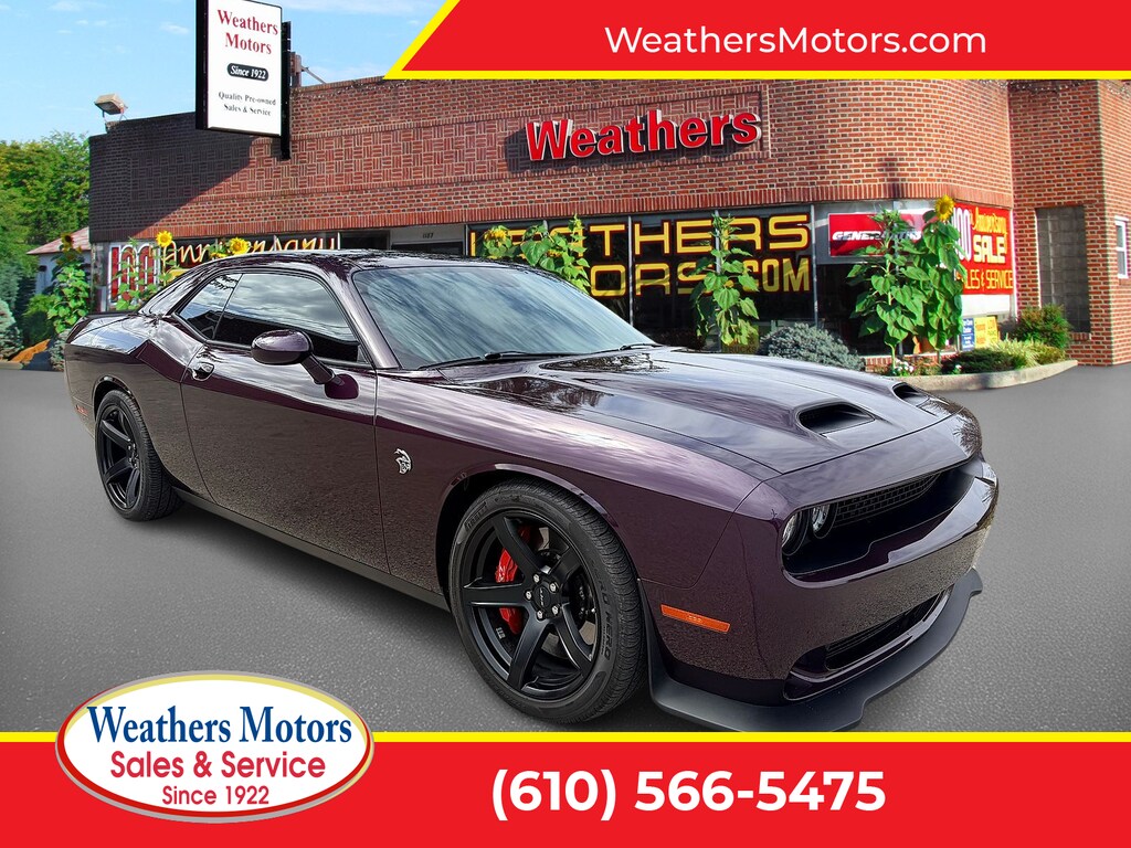 "**ONLY 4322miles ** 2021 Dodge Challenger SRT Hellcat in Purple Metallic Sought After Options Include **Navigation/GPS **Power Moon Roof/Sun Roof ****Apple Car Play/Android Auto Auto High Beam Headlamp Control Blind Spot & Cross Path Detection Dark Engine Turn Interior Accents Heated front seats High-Intensity Discharge Headlamps Integrated Voice Command w/Bluetooth Plus Package Power Multi-Function Foldaway Mirrors Power Tilt/Telescope Steering Column Premium-Stitched Dash Panel Radio/Driver Seat/Mirrors Memory Rain Sensitive Windshield Wipers SRT Performance Spoiler Technology Group **Exterior Rear Back Up Camera **Low Mileage **Security System **Steering Wheel Mounted Controls **WE BUY CARS & TRUCKS **We Offer Low Financing Rates **Weathers Motors- Recipient of ""Federated DEALER of the YEAR AWARD"". Recent Arrival! Clean CARFAX.WEATHERS MOTORS- CELEBRATING OVER 104 YEARS IN BUSINESS- Sales & Service....Media West Chester Chester Concordville Glen Mills Aston Brookhaven Springfield and Ridley used cars near me auto repair near me.........SAVE BIG $$ We price our cars below market value right from the start. You get a great car at an exceptional price! .**Call our friendly sales staff at 610-566-5475 to schedule your appointment. Enjoy our relaxed no pressure policy. Award winning dealer- Family owned and operated Since 1922. Free CARFAX Report with every vehicle. All of our vehicles are Serviced State Inspected then Professionally Detailed. That's the Weathers Way. WE SELL SERVICE ( Oil Change PA State Inspection Tires Brakes Auto Repair Engine Repair ) and BUY all makes and models imports and domestics. Check out our website: WeathersMotors.com."