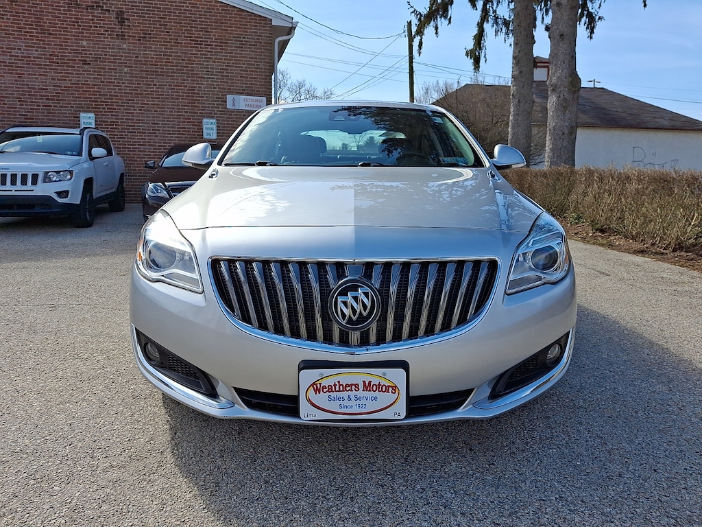 "2017 Buick Regal Premium II 21/29 City/Highway MPG in Quicksilver Metallic Sought After Options Include **Exterior Rear Back Up Camera **Low Mileage **Apple Car Play/Android Auto 6-Speed Automatic 2-Way Adjustable (Up/Down) Front Head Restraints 8-Way Power Driver Seat Adjuster 8-Way Power Front Passenger Seat Adjuster Auto-dimming Rear-View mirror Electric Power Steering Enhanced Driver Instrument Information Display Following Distance Indicator Front MacPherson Strut Suspension Heated Driver & Front Passenger Seats Lane Departure Warning System Memory Package Power Tilt-Sliding Moonroof w/Sunshade Premium audio system: IntelliLink Turn signal indicator mirrors **Security System **Steering Wheel Mounted Controls **WE BUY CARS & TRUCKS **We Offer Low Financing Rates **Weathers Motors- Recipient of ""Federated DEALER of the YEAR AWARD"". Recent Arrival! Clean CARFAX.WEATHERS MOTORS- CELEBRATING OVER 104 YEARS IN BUSINESS- Sales & Service....Media West Chester Chester Concordville Glen Mills Aston Brookhaven Springfield and Ridley used cars near me auto repair near me.........Awards: * JD Power Dependability Study * 2017 KBB.com 10 Most Comfortable Cars Under $30000 * 2017 KBB.com Brand Image AwardsSAVE BIG $$ We price our cars below market value right from the start. You get a great car at an exceptional price! .**Call our friendly sales staff at 610-566-5475 to schedule your appointment. Enjoy our relaxed no pressure policy. Award winning dealer- Family owned and operated Since 1922. Free CARFAX Report with every vehicle. All of our vehicles are Serviced State Inspected then Professionally Detailed. That's the Weathers Way. WE SELL SERVICE ( Oil Change PA State Inspection Tires Brakes Auto Repair Engine Repair ) and BUY all makes and models imports and domestics. Check out our website: WeathersMotors.com.Reviews: * Generous list of standard features; cabin stays quiet at highway speeds; optional turbocharged engine delivers strong acceleration; available with all-wheel drive for extra wet-weather traction. Source: Edmunds"