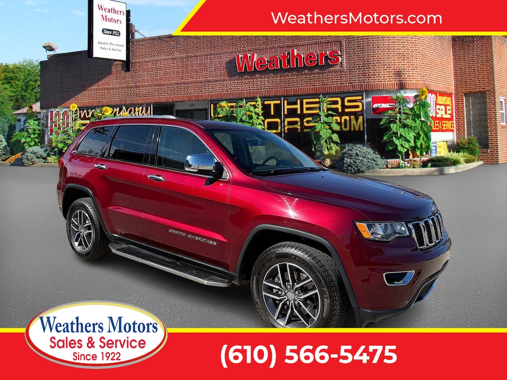 "2017 Jeep Grand Cherokee Limited in Velvet Red Pearlcoat Sought After Options Include ** 4 X 4 **Power Moon Roof/Sun Roof **Electronic Stability Control **Exterior Rear Back Up Camera **4WD 8.4""Touchscreen Display Auto-Dimming Exterior Passenger Mirror Auto-dimming Rear-View mirror Blind Spot & Cross Path Detection Heated door mirrors Heated front seats Heated steering wheel Memory seat Power driver seat Power Liftgate Power passenger seat Speed-Sensitive Wipers Turn signal indicator mirrors. **Leather Seating **Security System **Steering Wheel Mounted Controls **WE BUY CARS & TRUCKS **We Offer Low Financing Rates **Weathers Motors- Recipient of ""Federated DEALER of the YEAR AWARD"". Recent Arrival! Clean CARFAX.WEATHERS MOTORS- CELEBRATING OVER 104 YEARS IN BUSINESS- Sales & Service....Media West Chester Chester Concordville Glen Mills Aston Brookhaven Springfield and Ridley used cars near me auto repair near me.........Awards: * 2017 KBB.com 10 Most Awarded BrandsSAVE BIG $$ We price our cars below market value right from the start. You get a great car at an exceptional price! .**Call our friendly sales staff at 610-566-5475 to schedule your appointment. Enjoy our relaxed no pressure policy. Award winning dealer- Family owned and operated Since 1922. Free CARFAX Report with every vehicle. All of our vehicles are Serviced State Inspected then Professionally Detailed. That's the Weathers Way. WE SELL SERVICE ( Oil Change PA State Inspection Tires Brakes Auto Repair Engine Repair ) and BUY all makes and models imports and domestics. Check out our website: WeathersMotors.com."