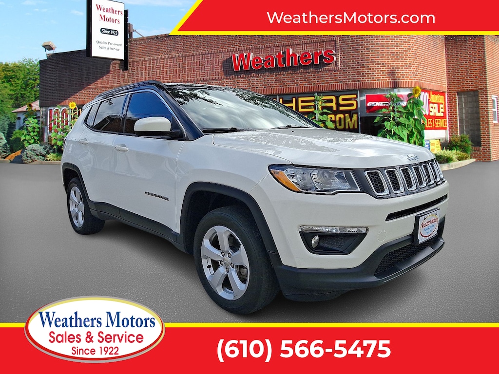 "22/30 City/Highway MPG 2019 Jeep Compass Latitude in White Clearcoat Sought After Options include ** 4 X 4 **4WD All-Season Floor Mats Cold Weather Group Heated Front Seats Heated Steering Wheel Outside temperature display Quick Order Package 2GJ Reversible Carpet/Vinyl Cargo Mat Windshield Wiper De-Icer **ELECTRONIC STABILITY CONTROL **EXTERIOR REAR BACK-UP CAMERA **STEERING WHEEL MOUNTED AUDIO CONTROLS **WE BUY CARS & TRUCKS **WE OFFER LOW FINANCE RATES **Weathers Motors- Recipient of ""Federated DEALER of the YEAR AWARD"". Recent Arrival! Clean CARFAX.WEATHERS MOTORS- CELEBRATING OVER 103 YEARS IN BUSINESS- Sales & Service....Media West Chester Chester Concordville Glen Mills Aston Brookhaven Springfield and Ridley used cars near me auto repair near me.........SAVE BIG $$ We price our cars below market value right from the start. You get a great car at an exceptional price! .**Call our friendly sales staff at 610-566-5475 to schedule your appointment. Enjoy our relaxed no pressure policy. Award winning dealer- Family owned and operated Since 1922. Free CARFAX Report with every vehicle. All of our vehicles are Serviced State Inspected then Professionally Detailed. That's the Weathers Way. WE SELL SERVICE ( Oil Change PA State Inspection Tires Brakes Auto Repair Engine Repair ) and BUY all makes and models imports and domestics. Check out our website: WeathersMotors.com."